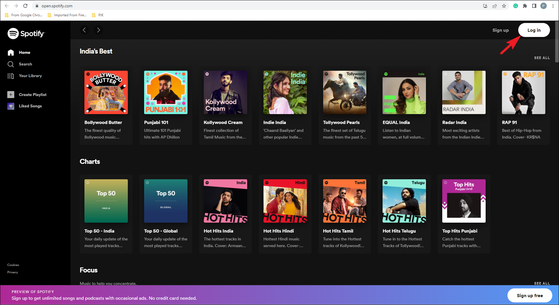 Step 2: Click on the Log in button and sign in to your Spotify account.