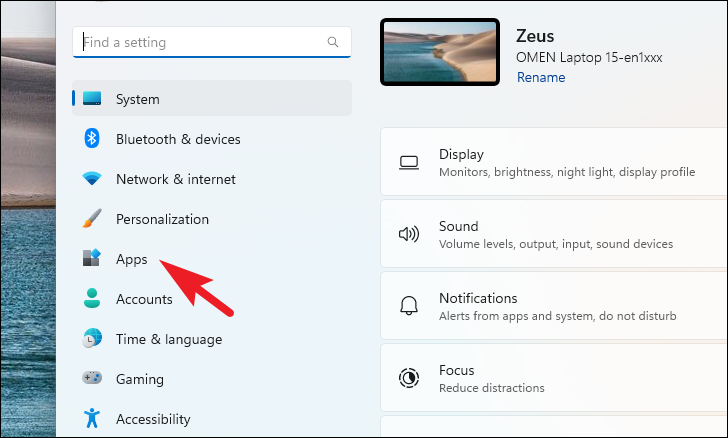 Step 2: In the Settings window, click on the Apps tab from the left sidebar.