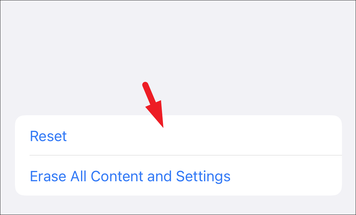 After that, on the ‘Transfer or Reset iPhone’ screen, tap on the ‘Reset’ tile present at the bottom section of your screen. This will bring up an overlay menu on your screen.