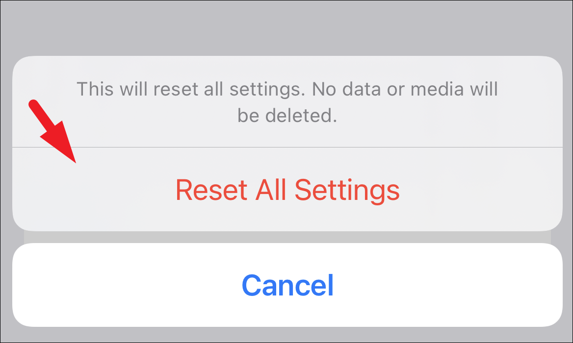 Resetting all settings has a very high potential to solve any issues you are facing on your device. As the name suggests, resetting all settings will completely restore the network settings, keyboard dictionary, Home Screen layout, privacy settings, location settings, and Apple Pay Card settings to their factory default state. However, no media or app will be deleted from your iPhone.