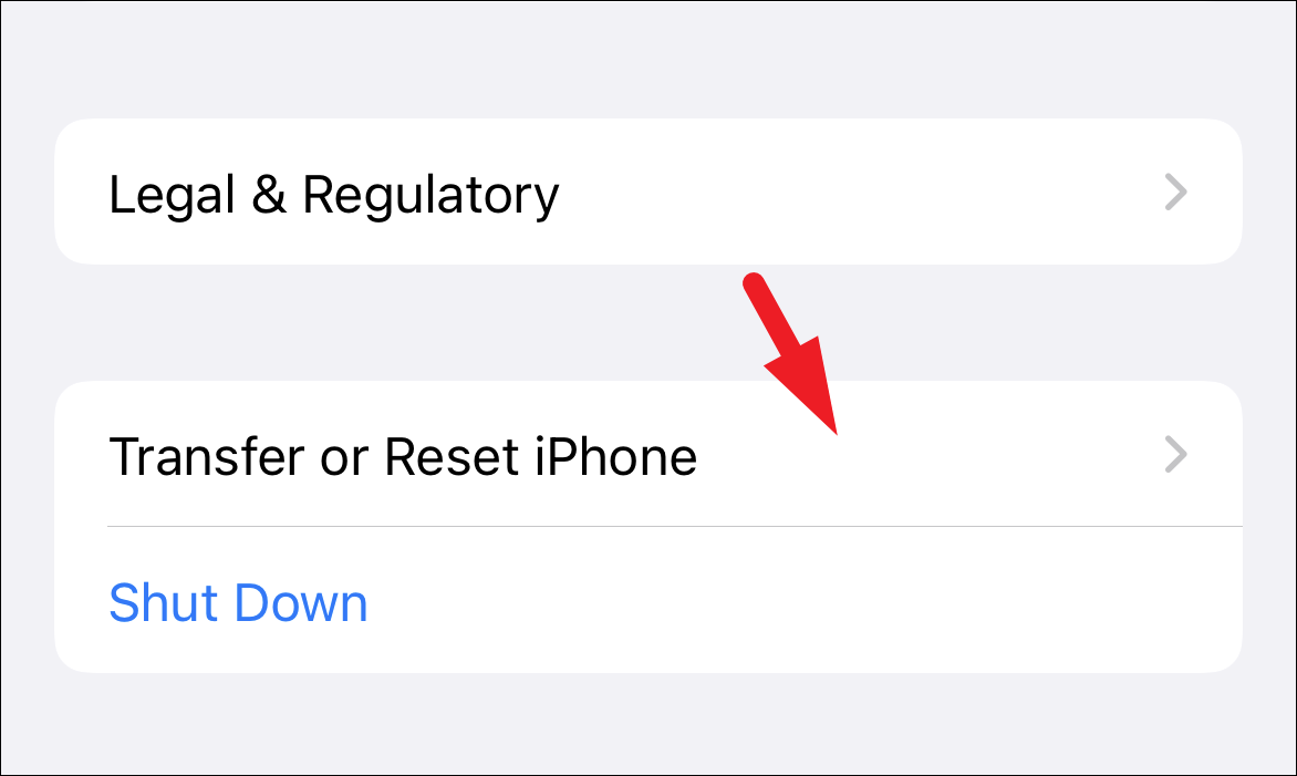 After that, scroll down to the end of the page and tap on the ‘Transfer or Reset iPhone’ option.