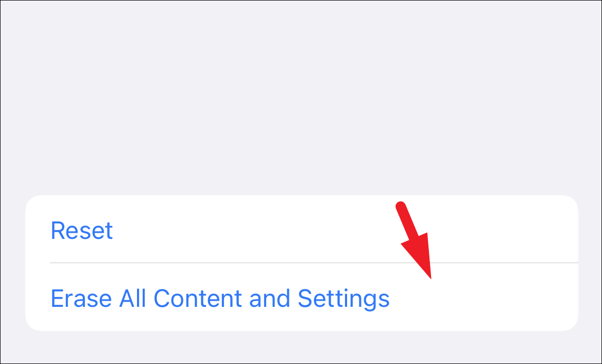 Now, on the next screen, tap on the ‘Erase all Content and Settings’ option to continue.