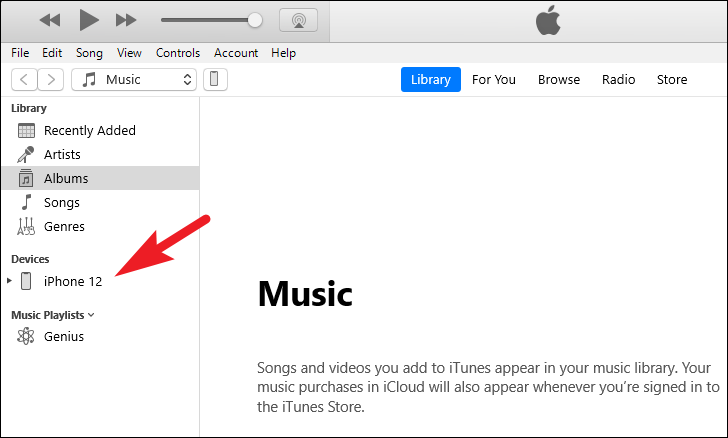 Then, on the iTunes window on your computer, locate and click on your iPhone tile present on the left sidebar to continue.