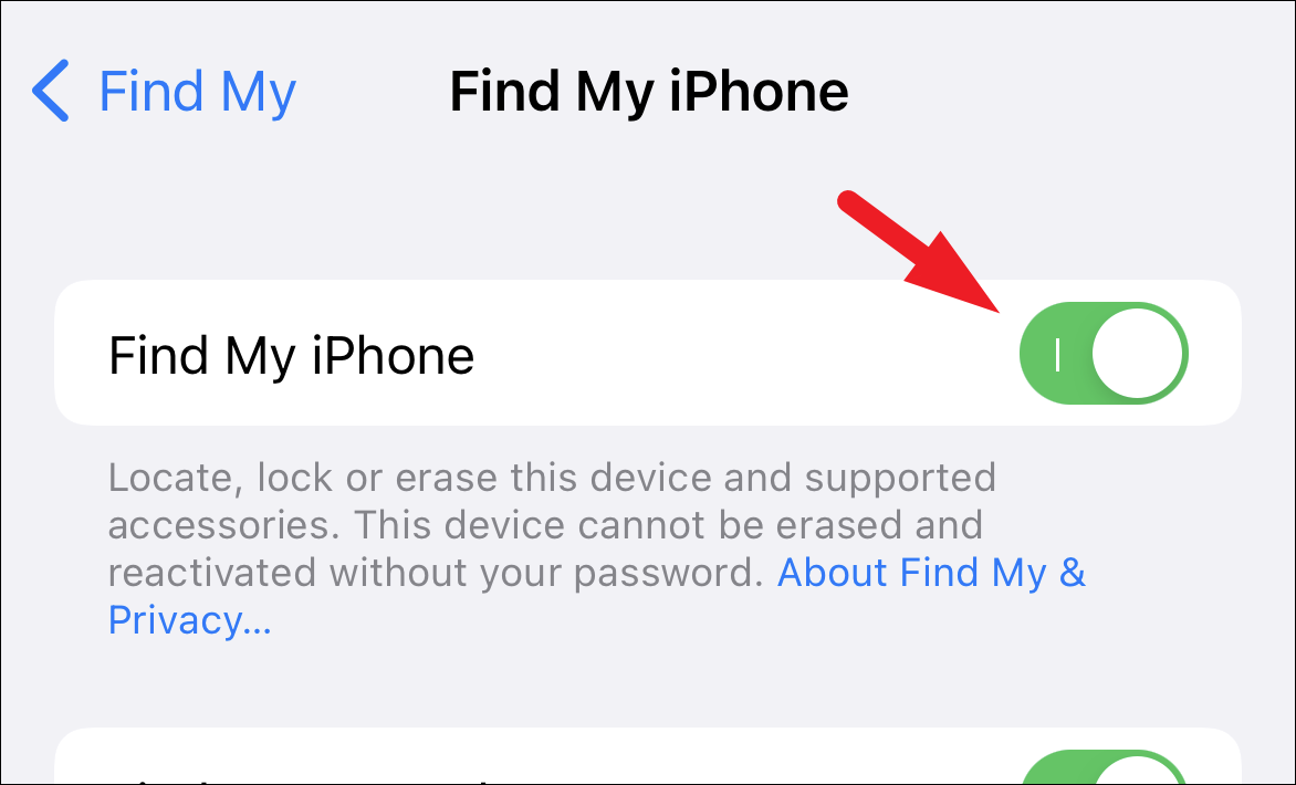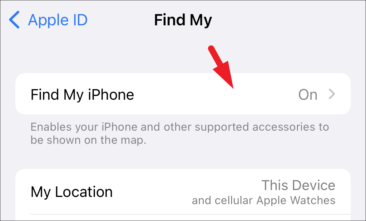 Now, locate the ‘Find My iPhone’ option and tap on the following toggle switch to bring it to the ‘Off’ position. This will bring an overlay window to your screen.