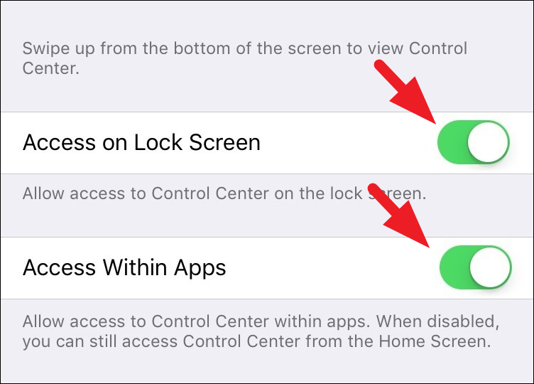 After that, locate the ‘Access on Lock Screen’ option on the screen and tap on the following toggle switch to bring it to the ‘On’ position. Next, locate the ‘Access Within apps’ option, present right beneath the ‘Access on Lock Screen’ option and make sure the toggle switch present on the far right edge is in the ‘On’ position.