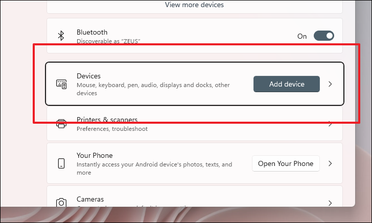 Next, keep pressing the Tab key until the cursor focus shifts to the ‘Devices’ tile.