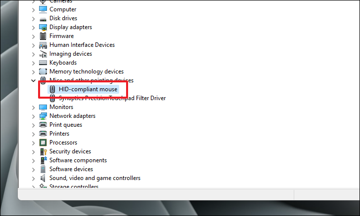 After that, press the Down Arrow key to navigate to the ‘HID-compliant mouse’/’Touchpad Driver’ option from the list and press Enter to open its properties window separately on your screen.