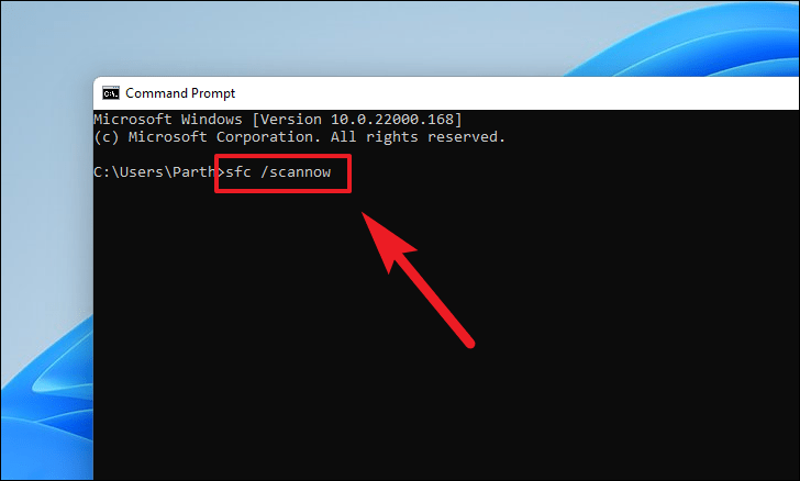 sfc /scannowand pressEnterto start the scan.