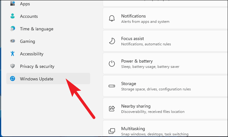 - In Settings, select Windows Update from the left sidebar.