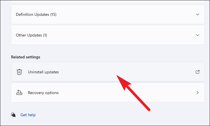 - Scroll down and click on Uninstall updates. This will open the Control Panel.