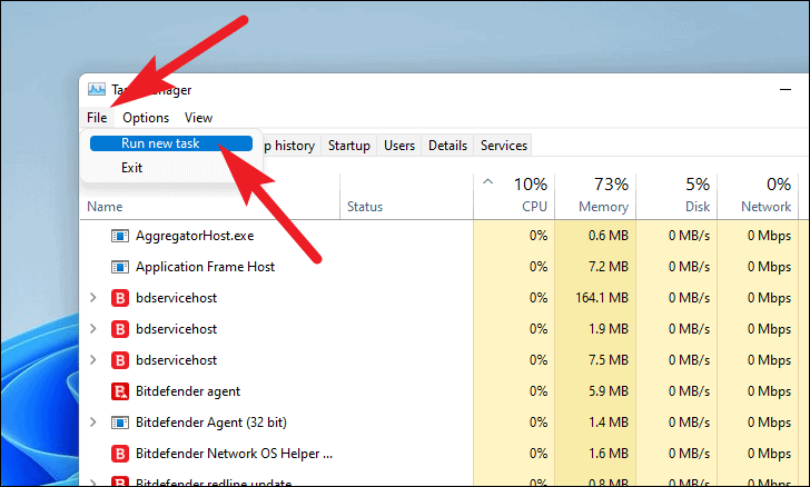 - Go to the File tab and select Run new task.