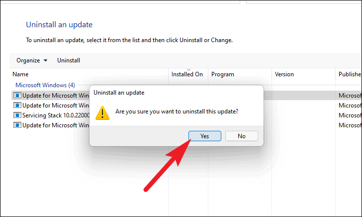 - Confirm the action by clicking Yes when prompted.