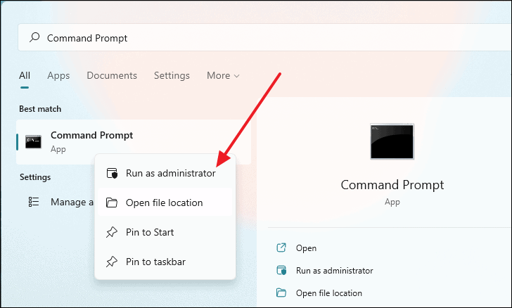 Command Promptas an administrator by searching for it in the Start menu, right-clicking on it, and selecting Run as administrator.