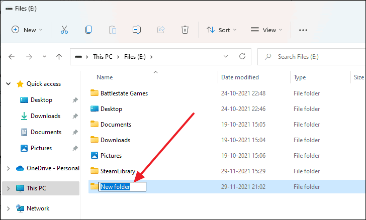 Ctrl+Shift+Nto create a new folder. - The new folder will appear, prompting you to rename it.