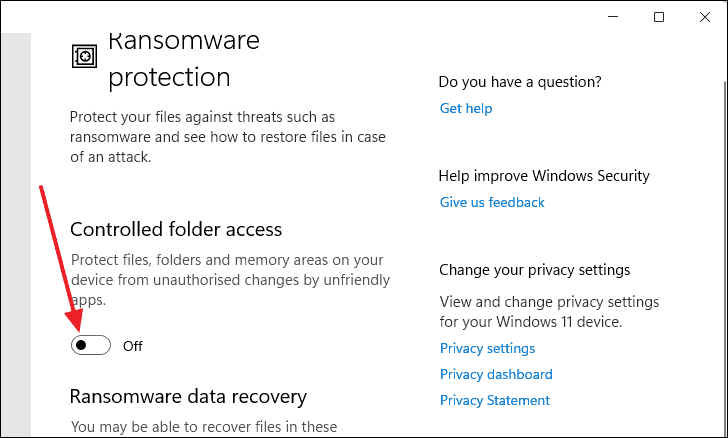 - Scroll down to find Controlled folder access and click on Manage Controlled folder access.