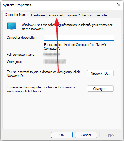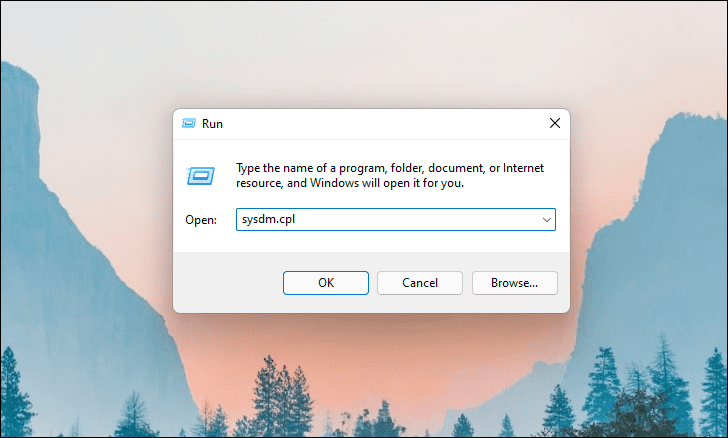 Windows+Rto open the Run dialog box. Typesysdm.cpland pressEnter.