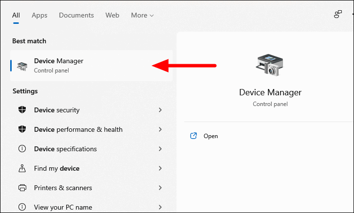 Step 1: Press WINDOWS + S to open the Search menu. Type Device Manager and select the relevant result to open it.