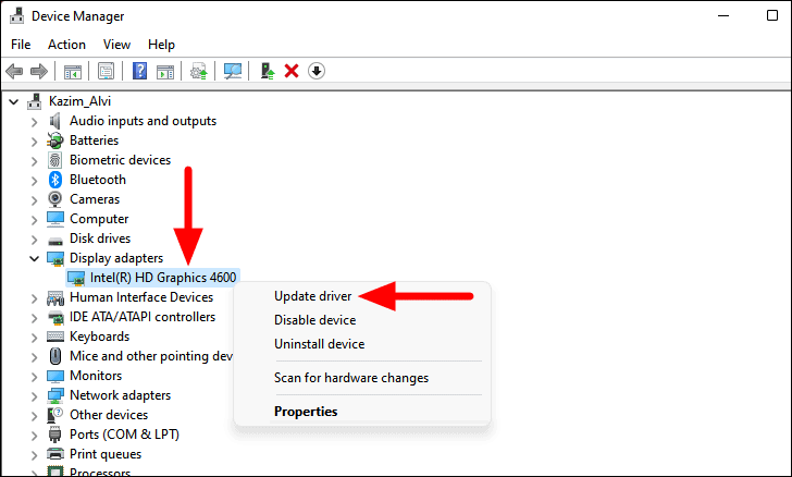 Step 3: Right-click on the device (e.g., your graphics card) and select Update driver.