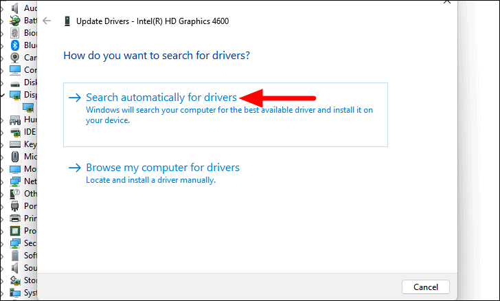 Step 4: Choose Search automatically for drivers in the Update Drivers window. Windows will search for the latest driver software and install it if available.