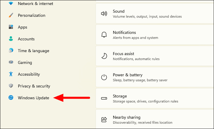Step 2: In Settings, click on Windows Update from the left sidebar.