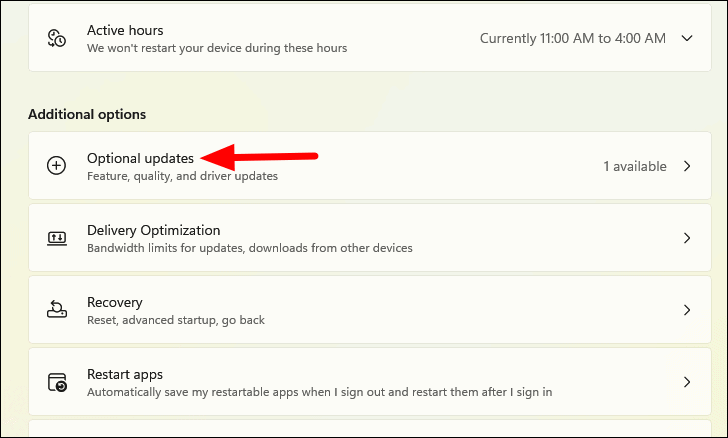 Step 3: Under Additional options, click on Optional updates.
