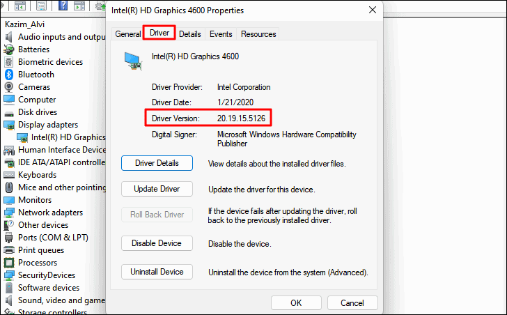 Step 1: In Device Manager, right-click on the device and select Properties. Go to the Driver tab and note the driver version.