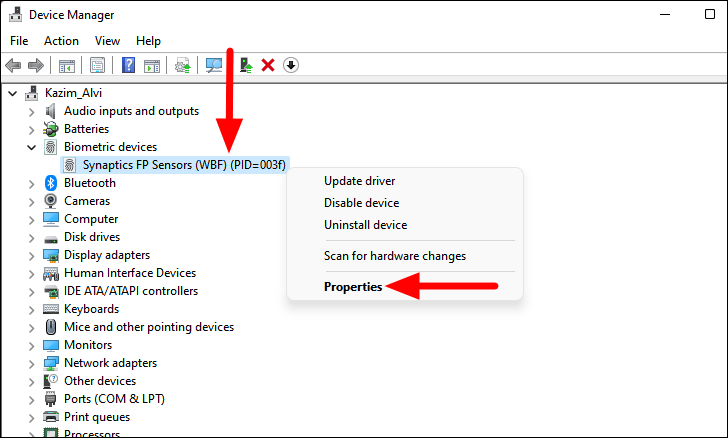 Step 2: Right-click on the device and select Properties.