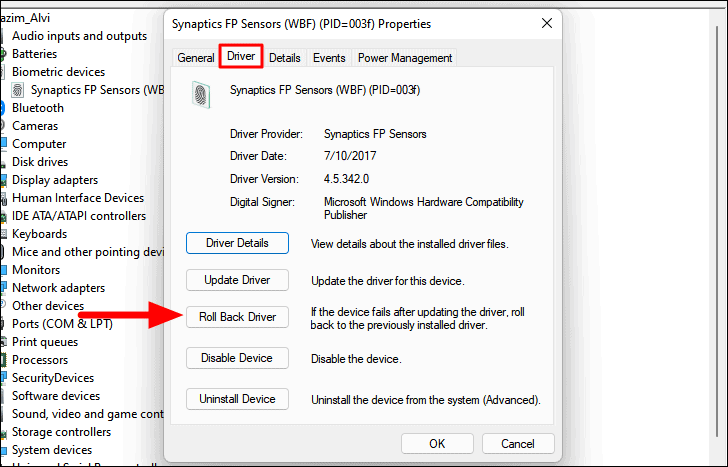 Step 3: Go to the Driver tab and click on Roll Back Driver. If the option is grayed out, you may need to manually install the previous driver version from the manufacturer's website.
