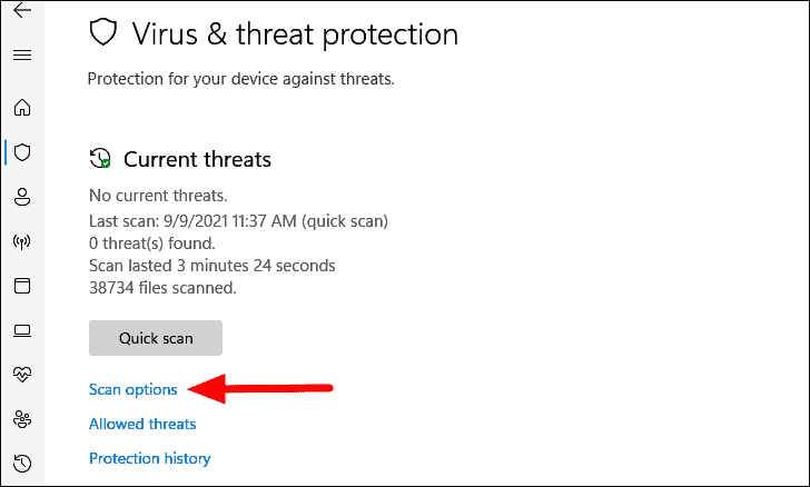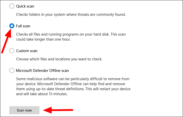 Step 3: Click on Scan options and select Full scan.