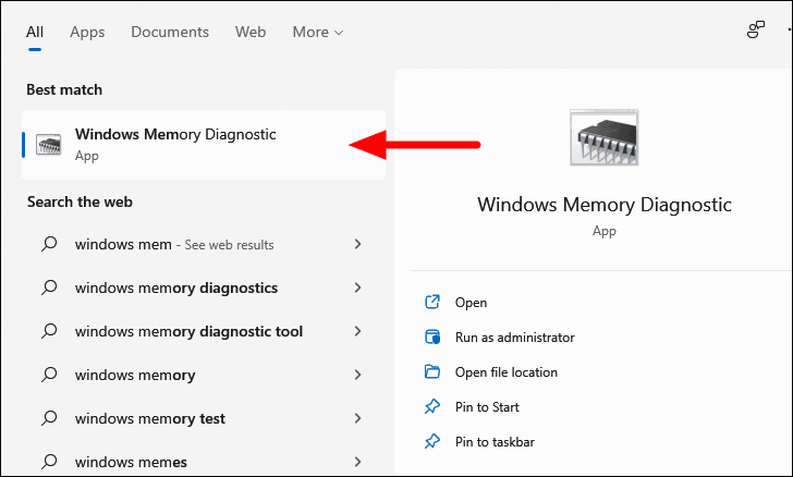 Step 1: Press WINDOWS + S and search for Windows Memory Diagnostic. Open the application.