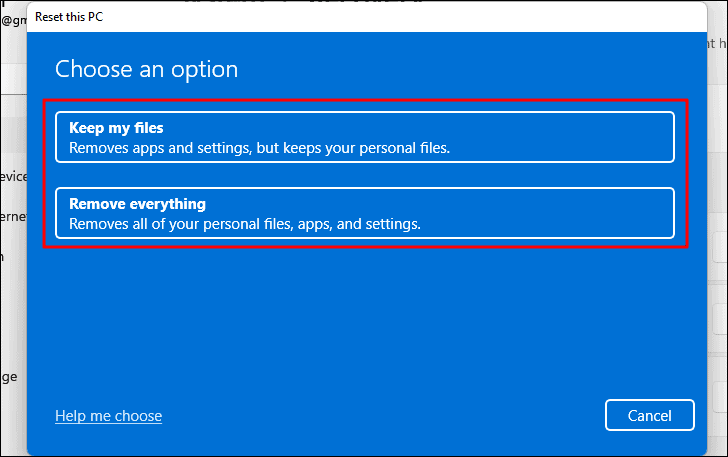 Step 3: Choose whether to Keep my files or Remove everything. Selecting the second option will remove all personal files, so ensure you have backups if needed.