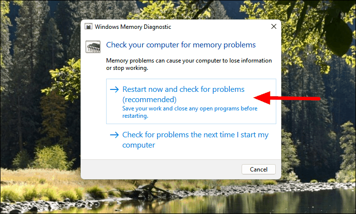 Step 2: Choose Restart now and check for problems. Ensure you save any open files before restarting.