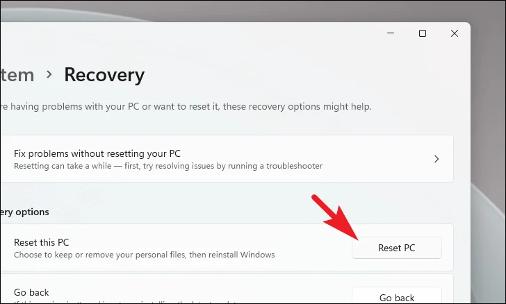 Step 4: Under 'Reset this PC', click on the 'Reset PC' button.