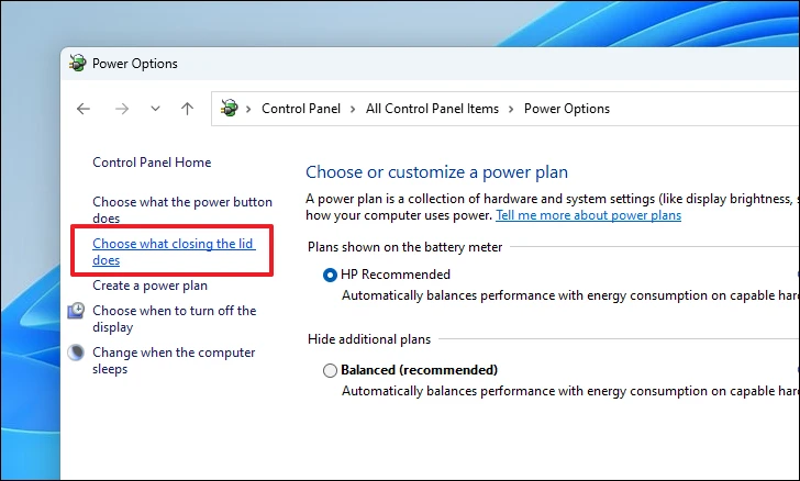 Step 3: From the left-hand menu, select 'Choose what closing the lid does'.