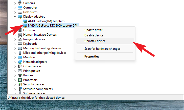 Step 2: In the Device Manager window, expand the 'Display adapters' section by double-clicking on it. Right-click on your graphics card listed and select 'Uninstall device' from the context menu.