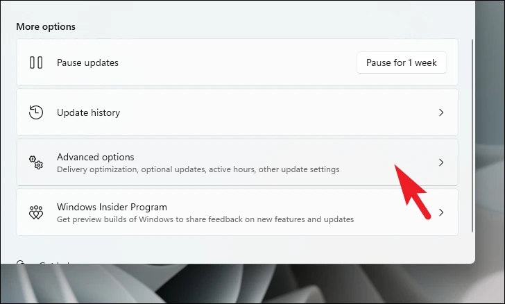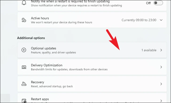 Step 8: Scroll down to the 'Additional options' section and select 'Optional updates'.