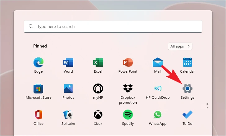 Step 5: After rebooting, open the Start Menu and click on the 'Settings' icon.