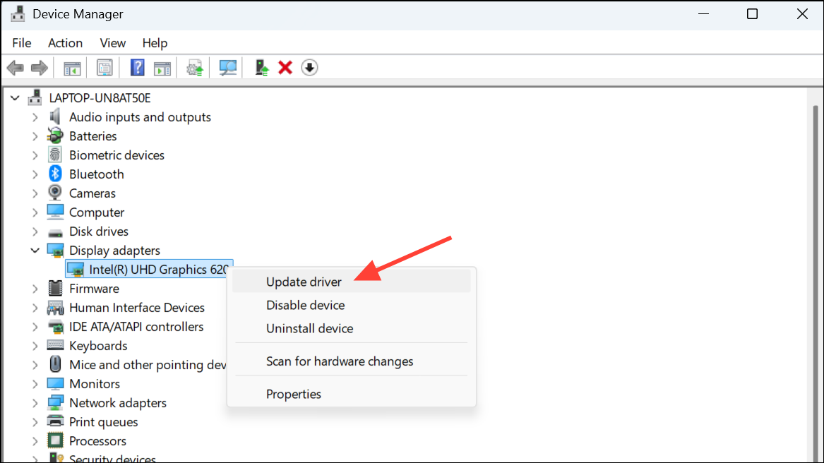 Step 2: Look for devices with a yellow exclamation mark, indicating driver issues. Right-click the problematic device and select Update driver.