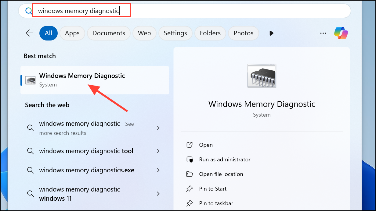Step 1: Faulty RAM modules frequently cause kernel-mode errors. Open the Windows Memory Diagnostic tool by typing Windows Memory Diagnostic in the Start menu search bar.