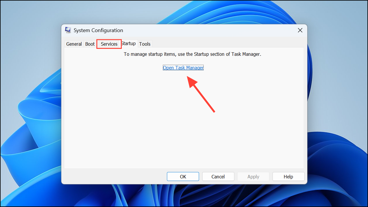 Step 3: Next, open the Startup tab and click Open Task Manager.