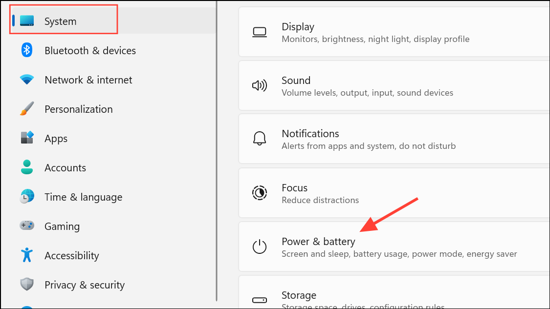 Step 1: Go to Settings > System > Power & Battery (or Power & Sleep).