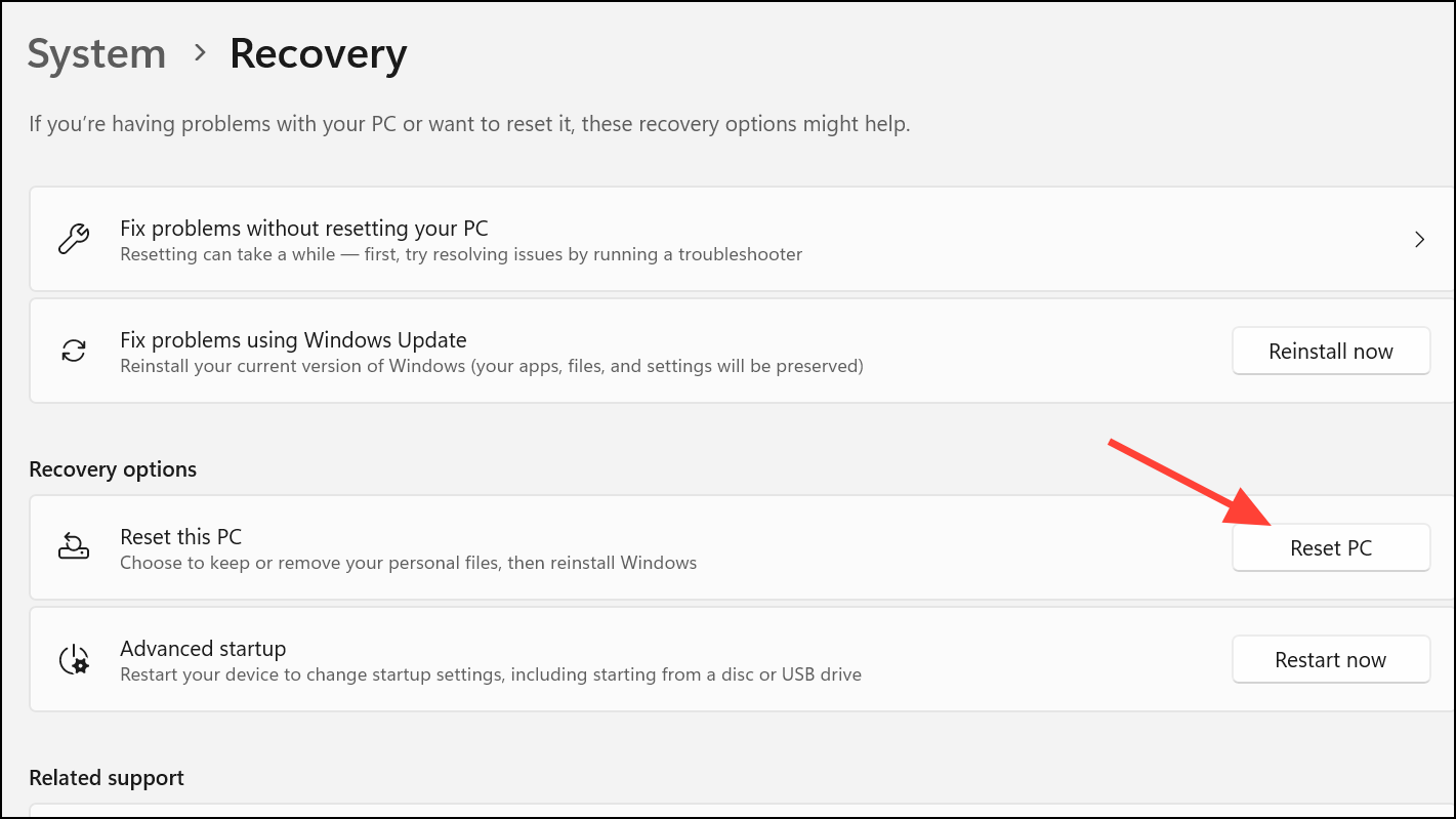 Step 2: Open Settings > System > Recovery and select Reset this PC. Choose whether to keep or remove your files, then follow on-screen prompts to reinstall Windows.