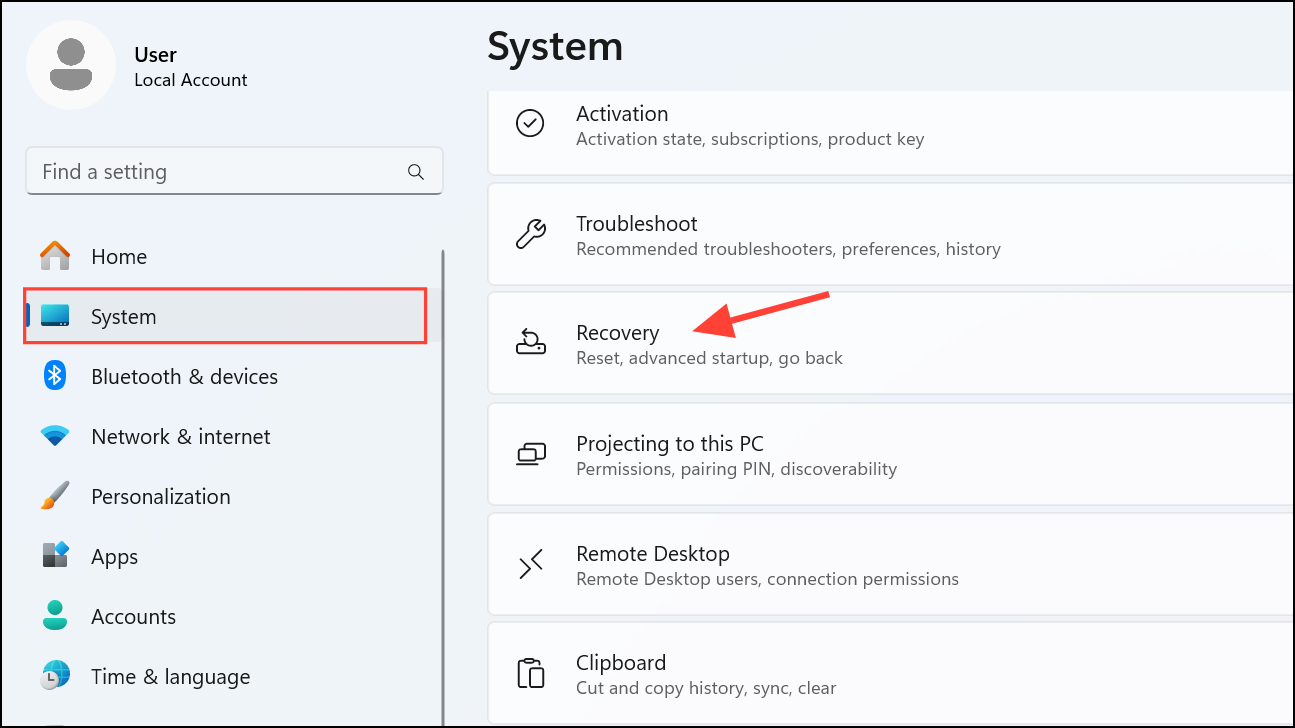 Step 1: Press Windows + I to open Settings. Navigate to "System" > "Recovery."