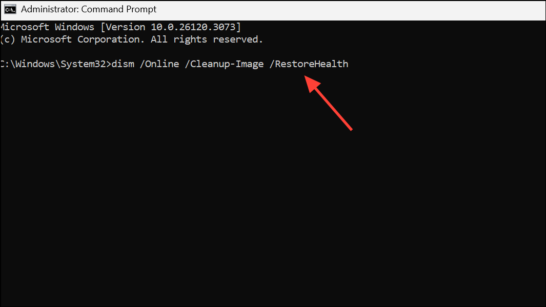 DISM repairs the Windows image, addressing deeper corruption. Restart your PC after both commands finish.