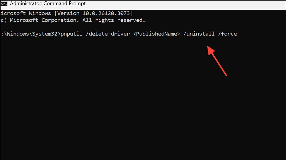 pnputil /delete-driver <PublishedName> /uninstall /forceReplace <PublishedName> with the driver’s actual published name, such as oem58.inf. Restart your computer to allow Windows to reinstall a compatible driver if the device is needed.