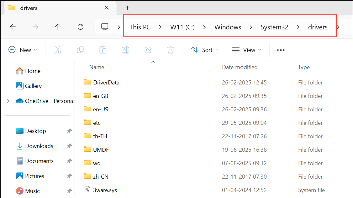 Step 3: Navigate to C:\Windows\System32\drivers and ensure any leftover files from uninstalled drivers are removed, taking care not to delete system files.