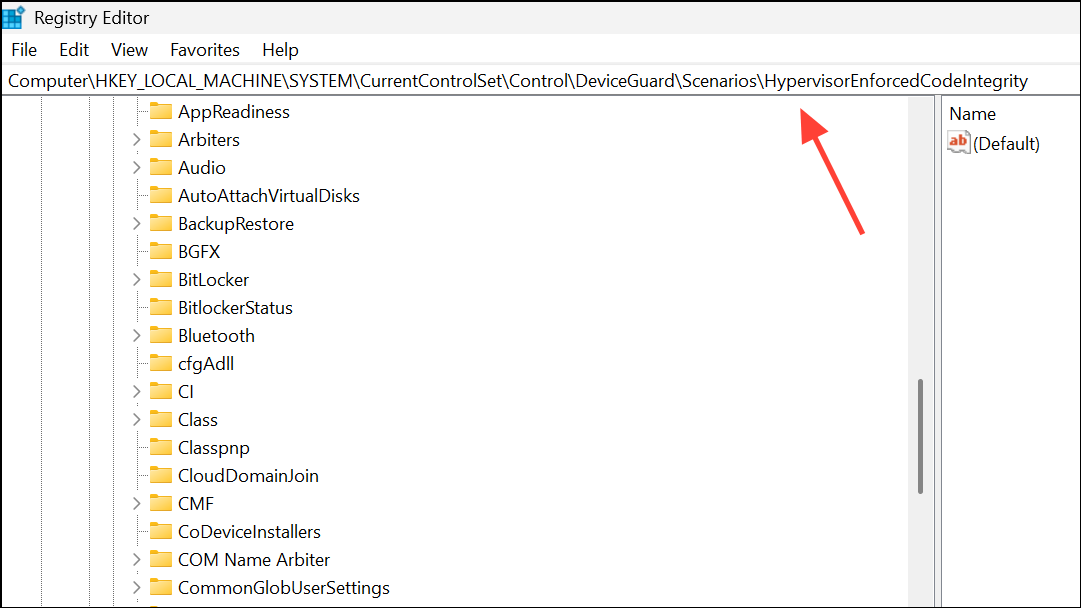 HKEY_LOCAL_MACHINE\SYSTEM\CurrentControlSet\Control\DeviceGuard\Scenarios\HypervisorEnforcedCodeIntegrity