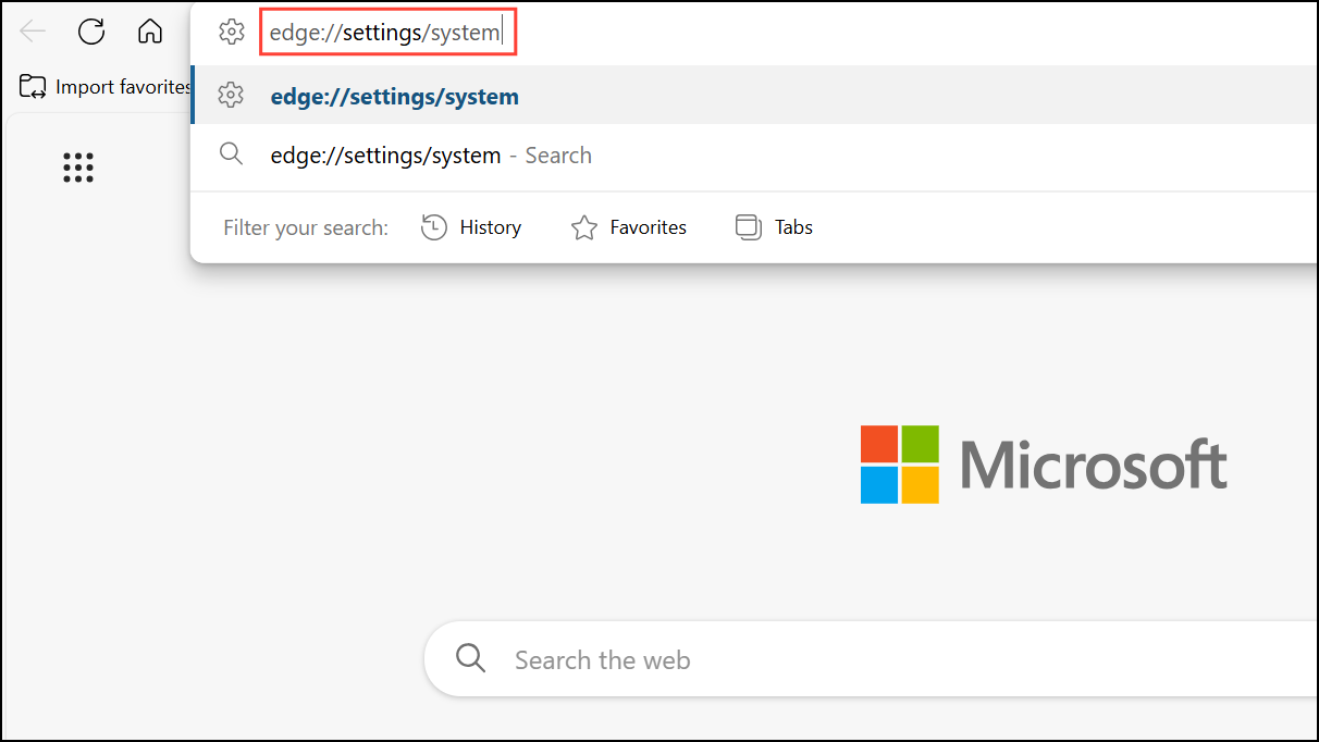 Step 1: Type edge://settings/system into the Edge address bar and press Enter.
