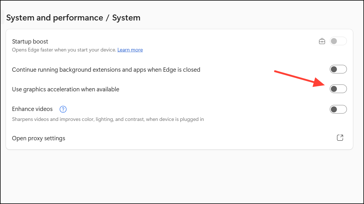 Step 2: Find Use graphics acceleration when available and toggle it off.