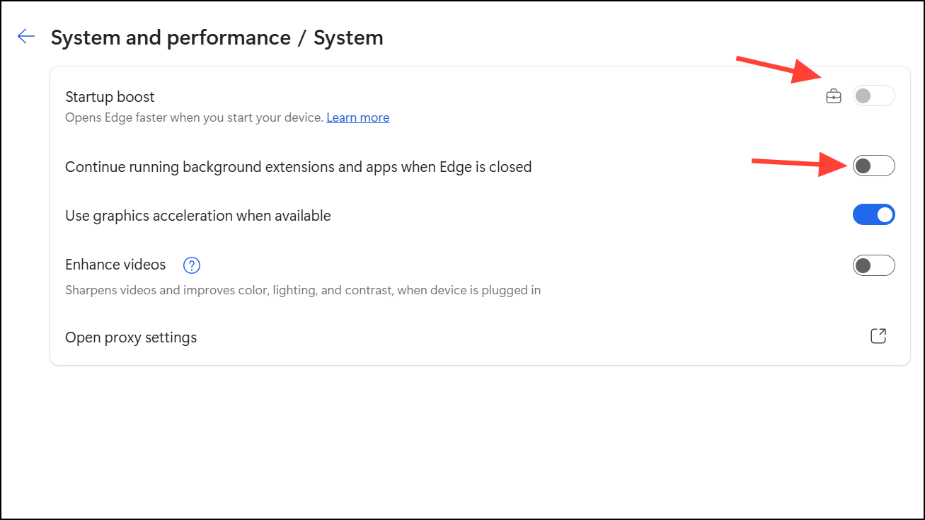 This ensures Edge releases memory when you close the browser, rather than keeping processes running in the background.